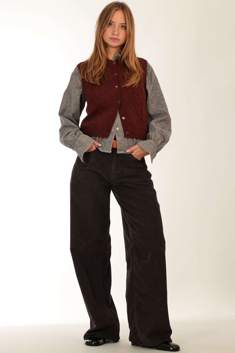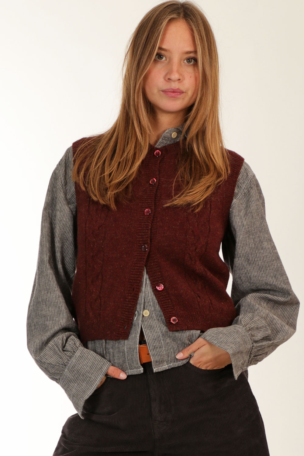 The Alyson sleeveless cardigan by A.P.C. is crafted from rustic burgundy wool and has a slightly cropped fit.