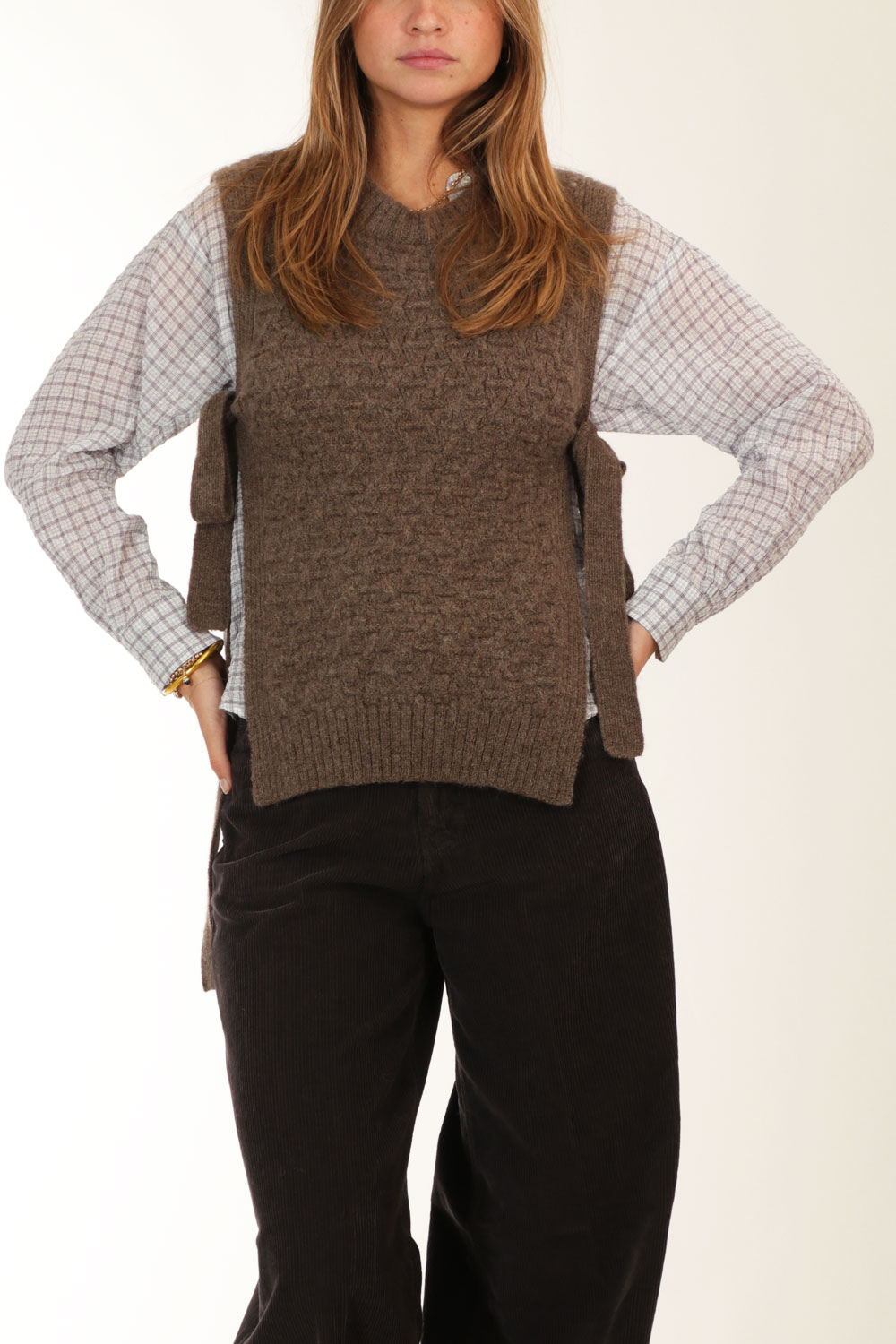 The Bodil poncho from a-t-w-o-o-d is knitted from a fine 100% baby alpaca wool in a playful cable pattern and exclusively stocked at Sky Amsterdam.