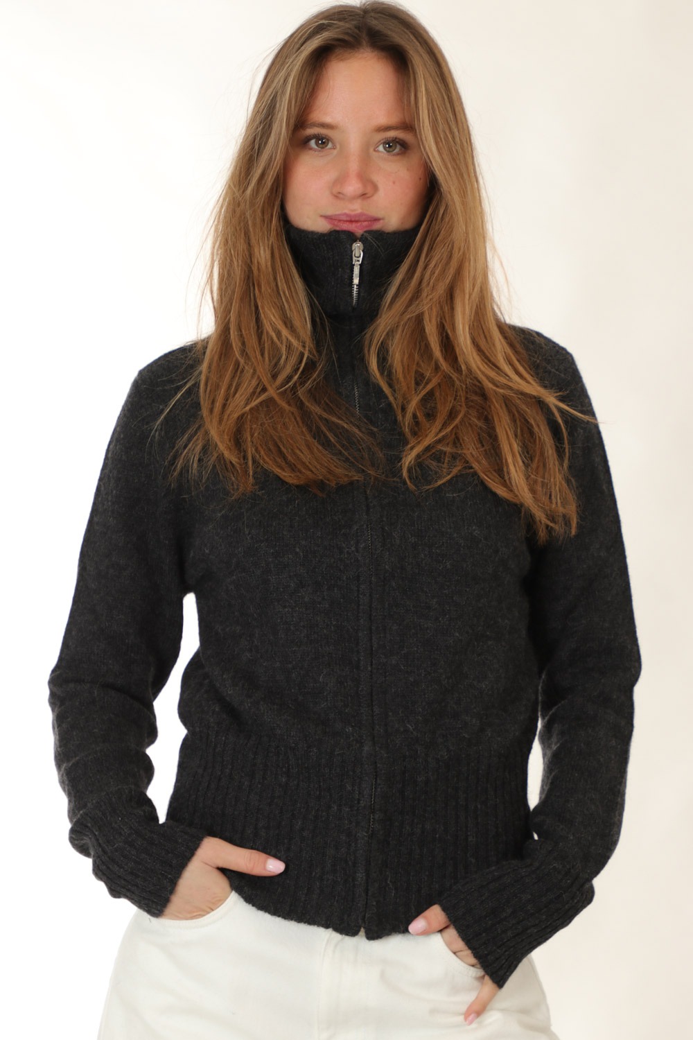 high neck zipped cardigan,