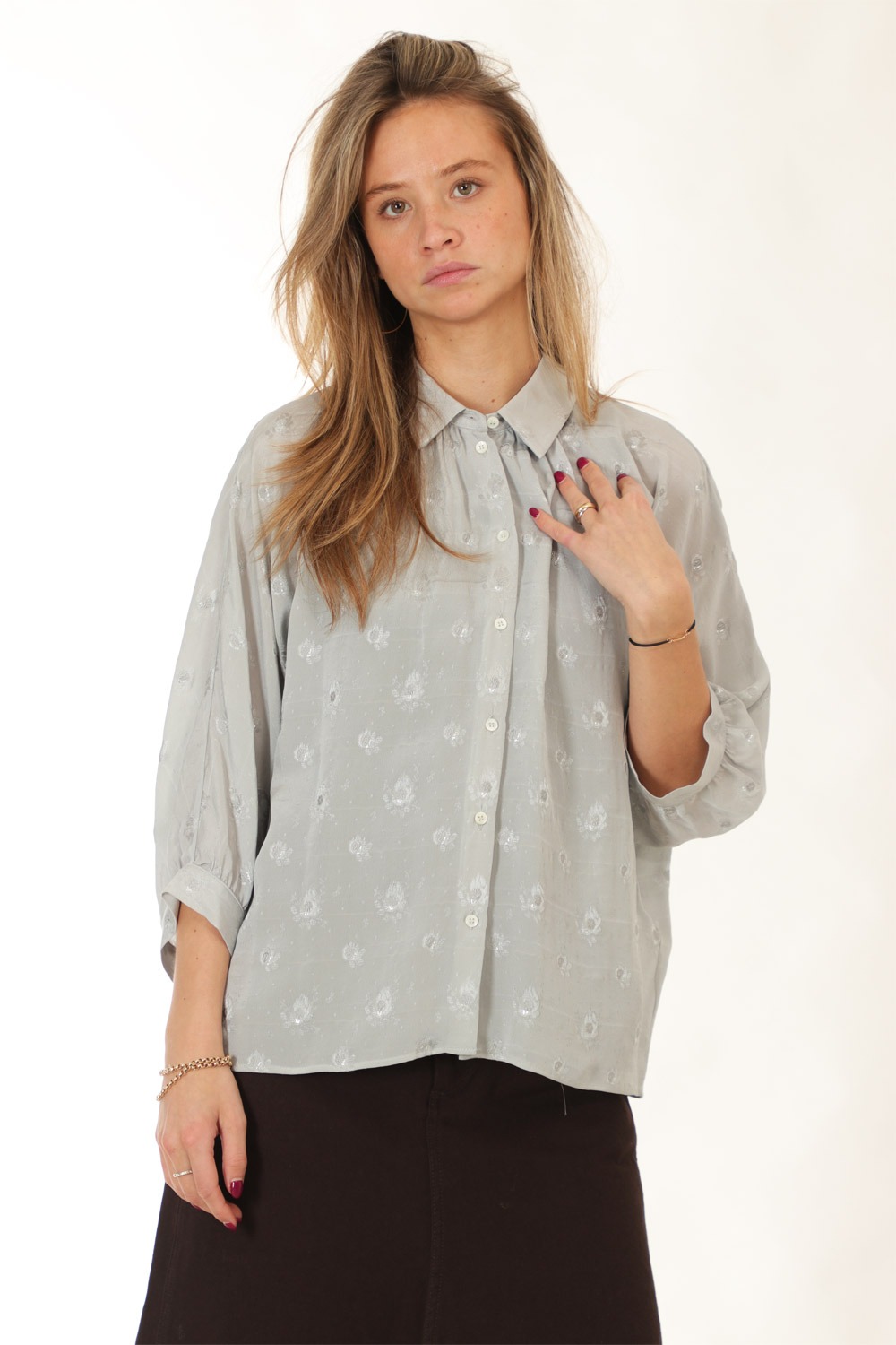 short wide sleeve, buttoned cuff,