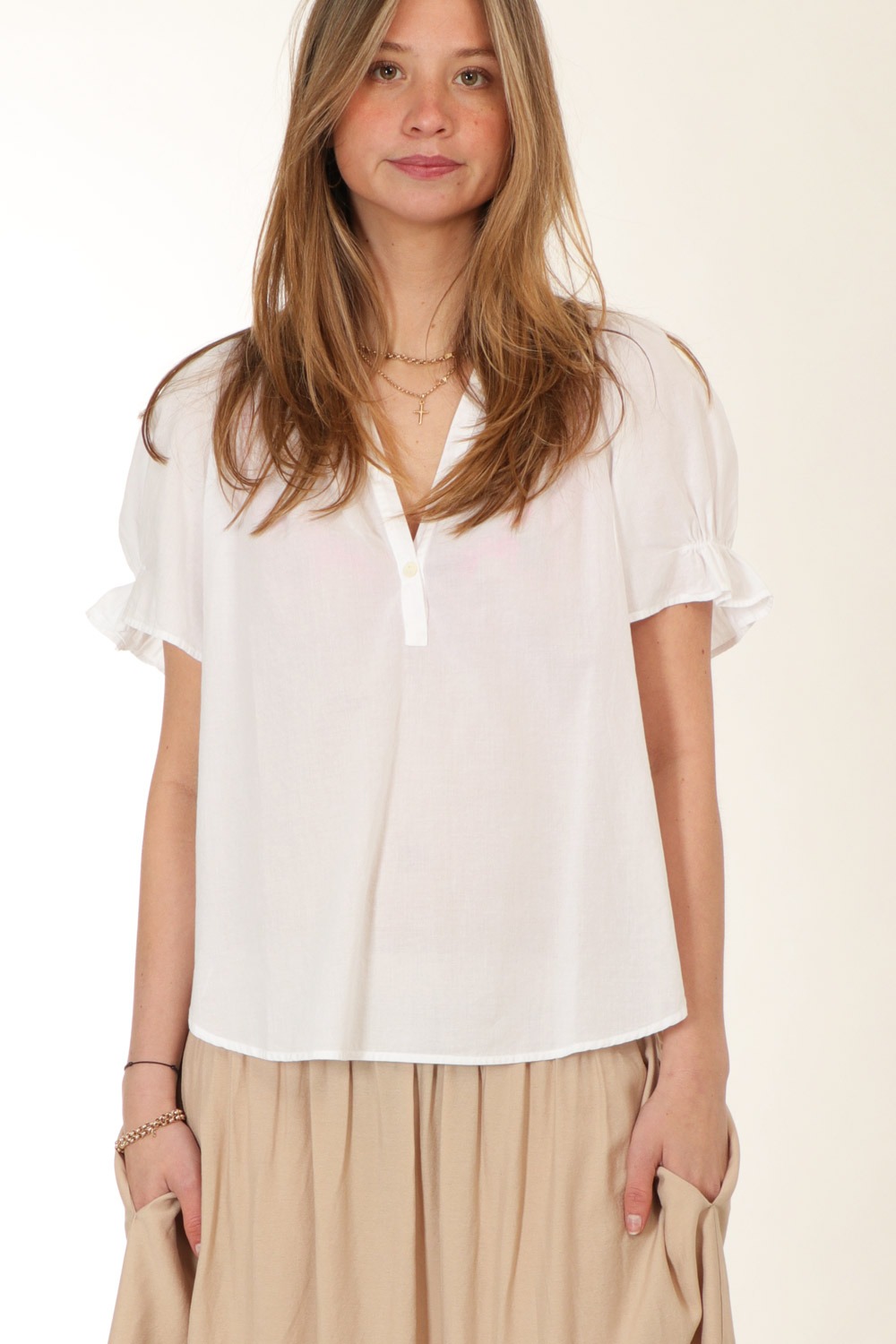 A breezy top for the warmest days. The femme V-neck Astryde blouse from Xirena is made from lightweight cotton with a relaxed fit.